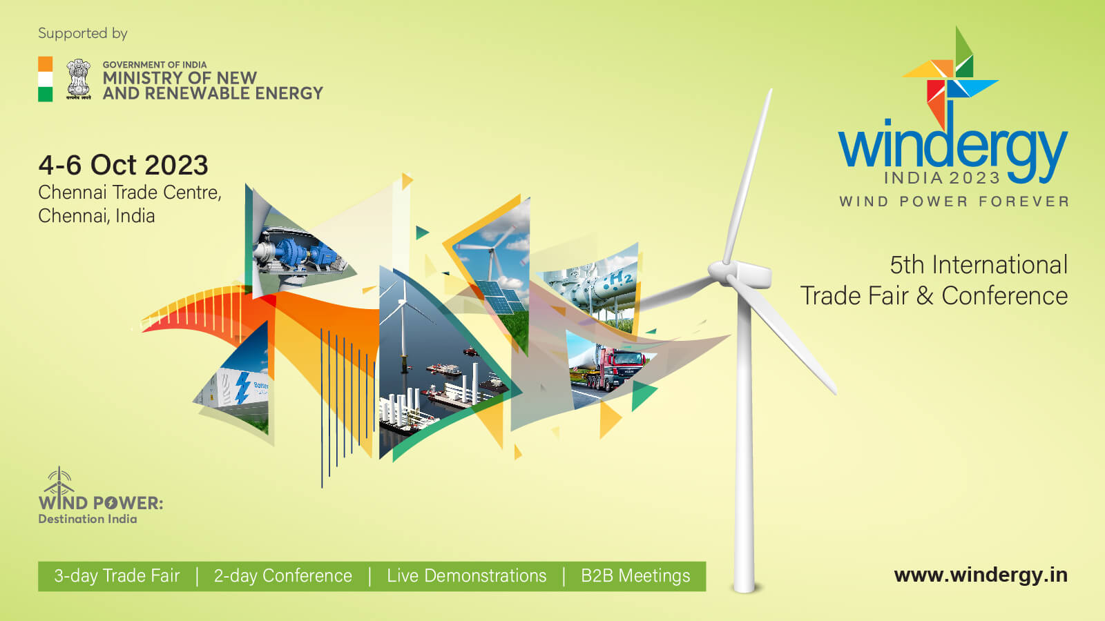 Windergy India 2023 is organized by Indian Wind Turbine Manufacturers Association (IWTMA) and PDA Ventures Pvt Ltd, the 3-day trade fair and conference will provide a vibrant platform to meet, interact and engage with policymakers, regulatory authorities, international and domestic technology, solutions and service providers from the wind power industry.
