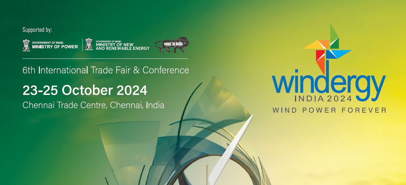 Windergy India 2024 will be held from 23 – 25 October 2024 at Chennai, India. Organised by the Indian Wind Turbine Manufacturers Association (IWTMA) and PDA Ventures Pvt Ltd, the 6th edition of Windergy India comprising of a 3-day trade fair and 2 day conference will provide a vibrant platform to meet, interact and engage with policymakers, regulatory authorities, international and domestic technology, solutions and service providers from the wind power industry.