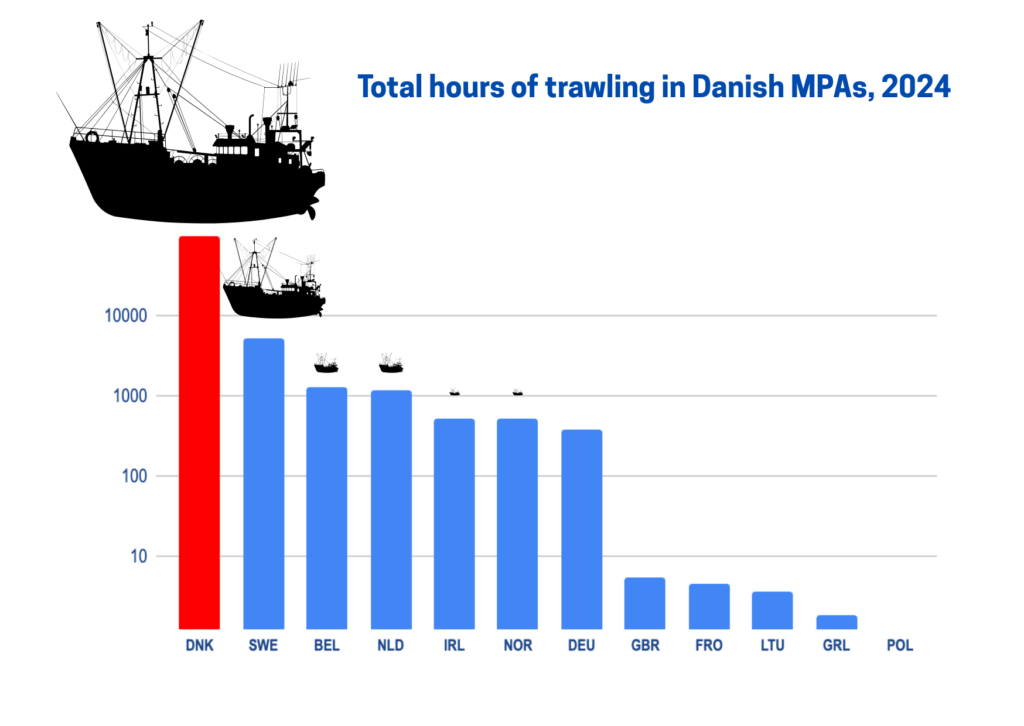 After Danish trawlers, Swedish, Belgian and Dutch vessels spent the most hours trawling MPAs in and around Denmark, according to data from Global Fisheries Watch.