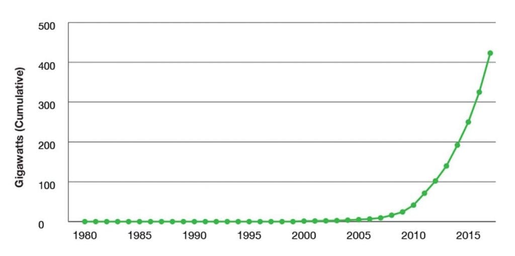 Key to a successful energy transition is storage that is growing exponentially as well. According to Bloomberg New Energy Finance, the global energy storage market is projected to double six times between 2016 and 2030, rising to a total of 125 gigawatts/305 gigawatt-hours. This is similar to the remarkable expansion that the solar industry went through from 2000 to 2015, in which the share of photovoltaics as a percentage of total generation doubled seven times. The combination of batteries, solar, other renewables and storage systems is going to cause a dramatic transformation in the world’s energy markets – moving from a centralized to a decentralized system that empowers consumers.