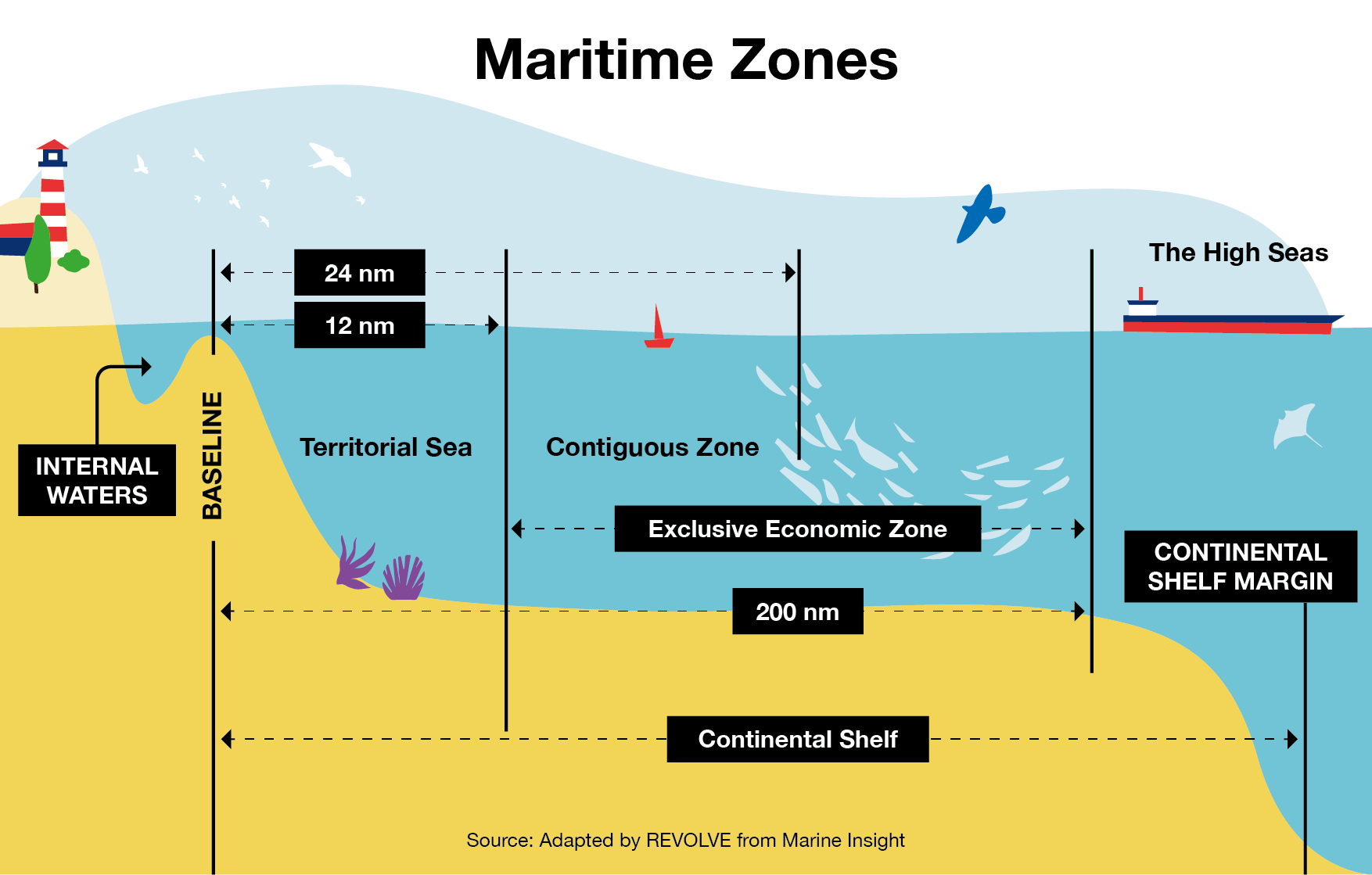 High Seas, international waters, open ocean – all these terms describe the vast expanses of the ocean that are beyond the county’s exclusive economic zone (EEZ), meaning that these areas beyond 200 nautical miles or 370 km from the coast of a country can be used freely internationally for fishing, shipping, scientific research, and a number of other activities. The High Seas lie beyond the jurisdiction of any given country, which is why their governance falls under international law.