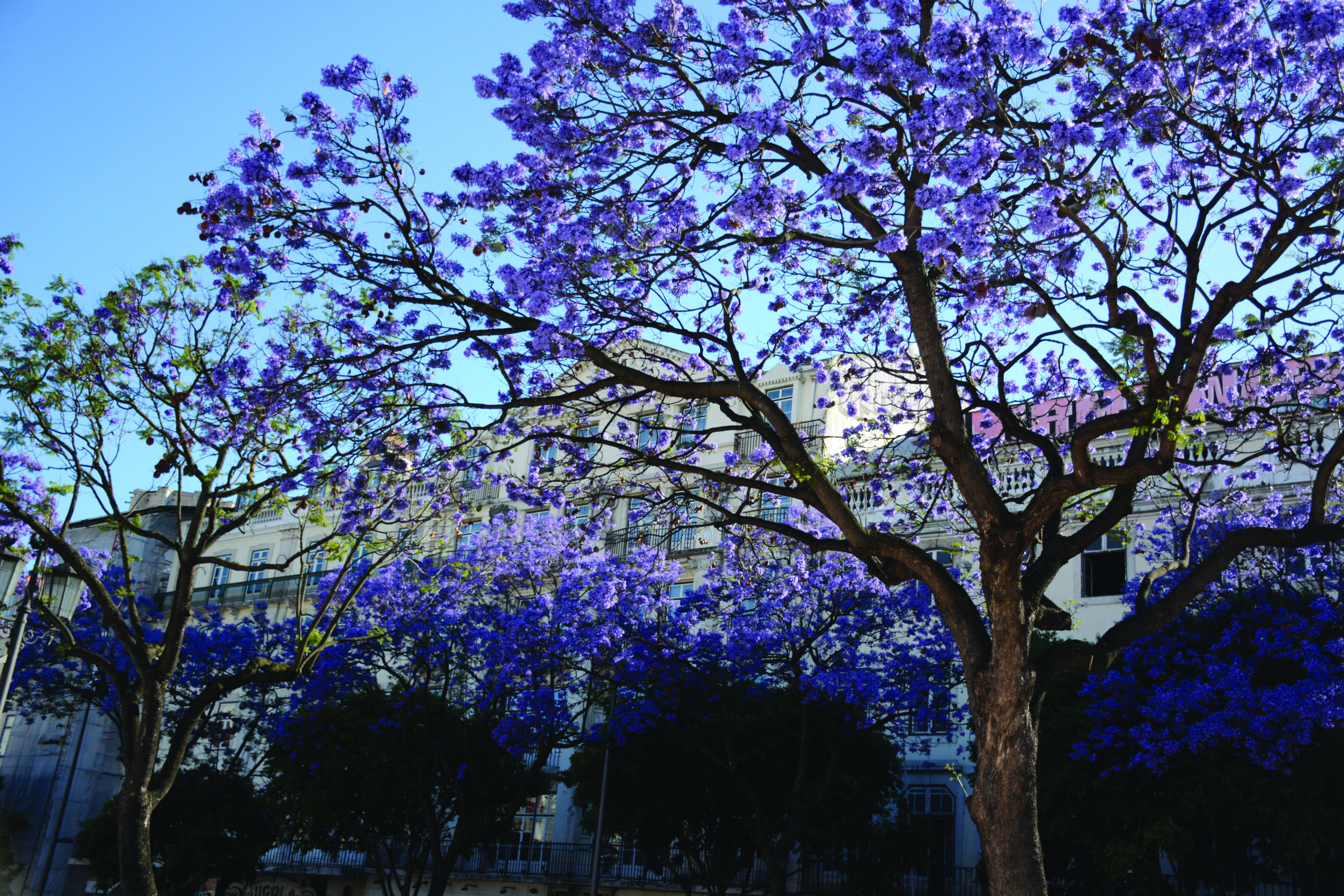 In Lisbon the Jacarandas are blooming and the avenues, dressed in exuberant purple, give the city an air of fantasy land.