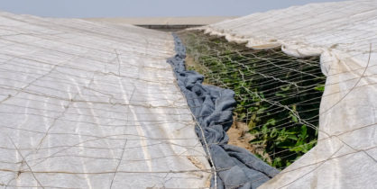 It is mid-July 2023 and many of the greenhouses are empty, lying in wait for the next planting season the following month. There is little action, although occasionally the silent and languid heat that has settled over the nameless dirt tracks is interrupted by a passing worker on an electric scooter. The odd truck emblazoned with images of vegetables trundles down the lanes of plastic.