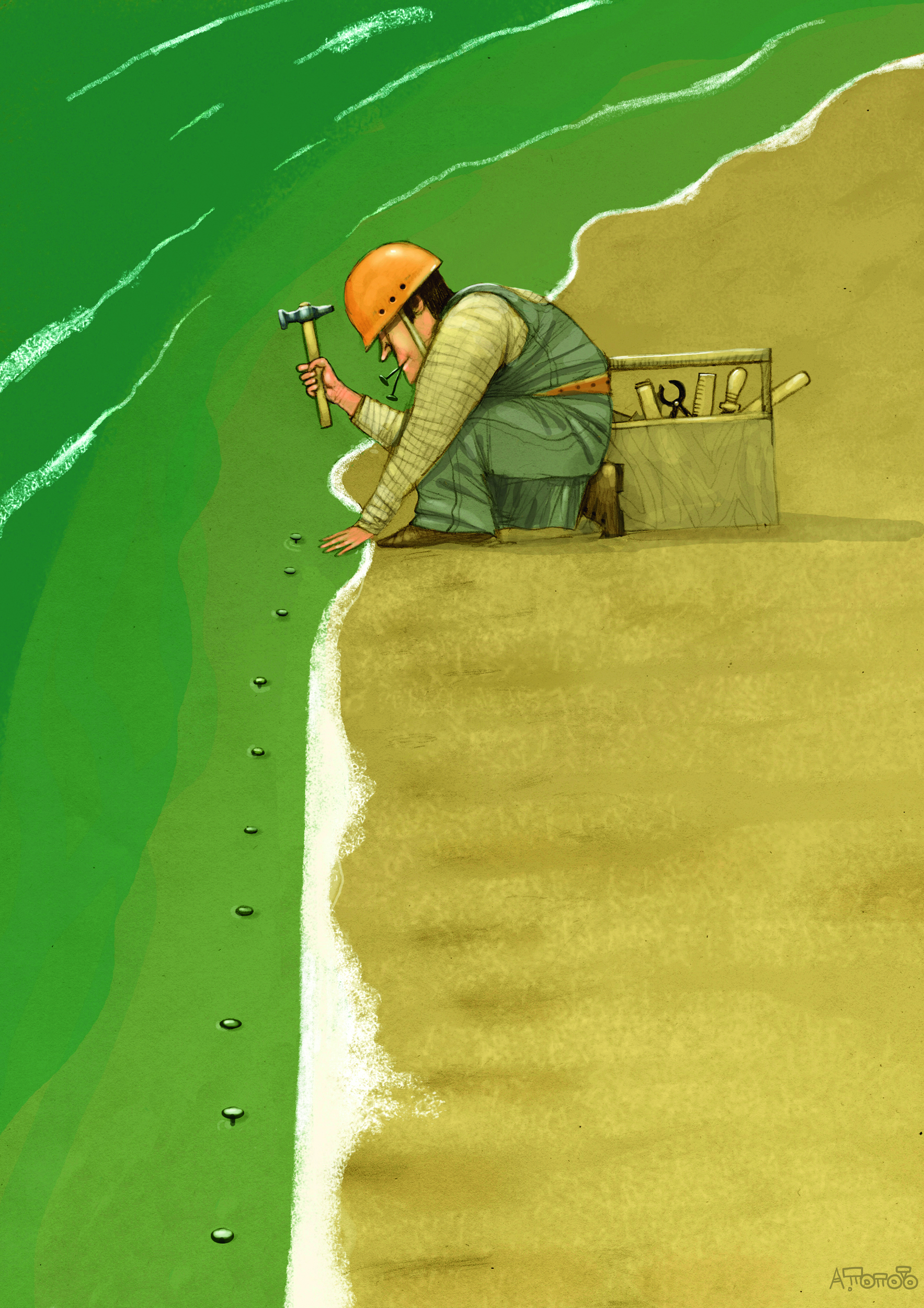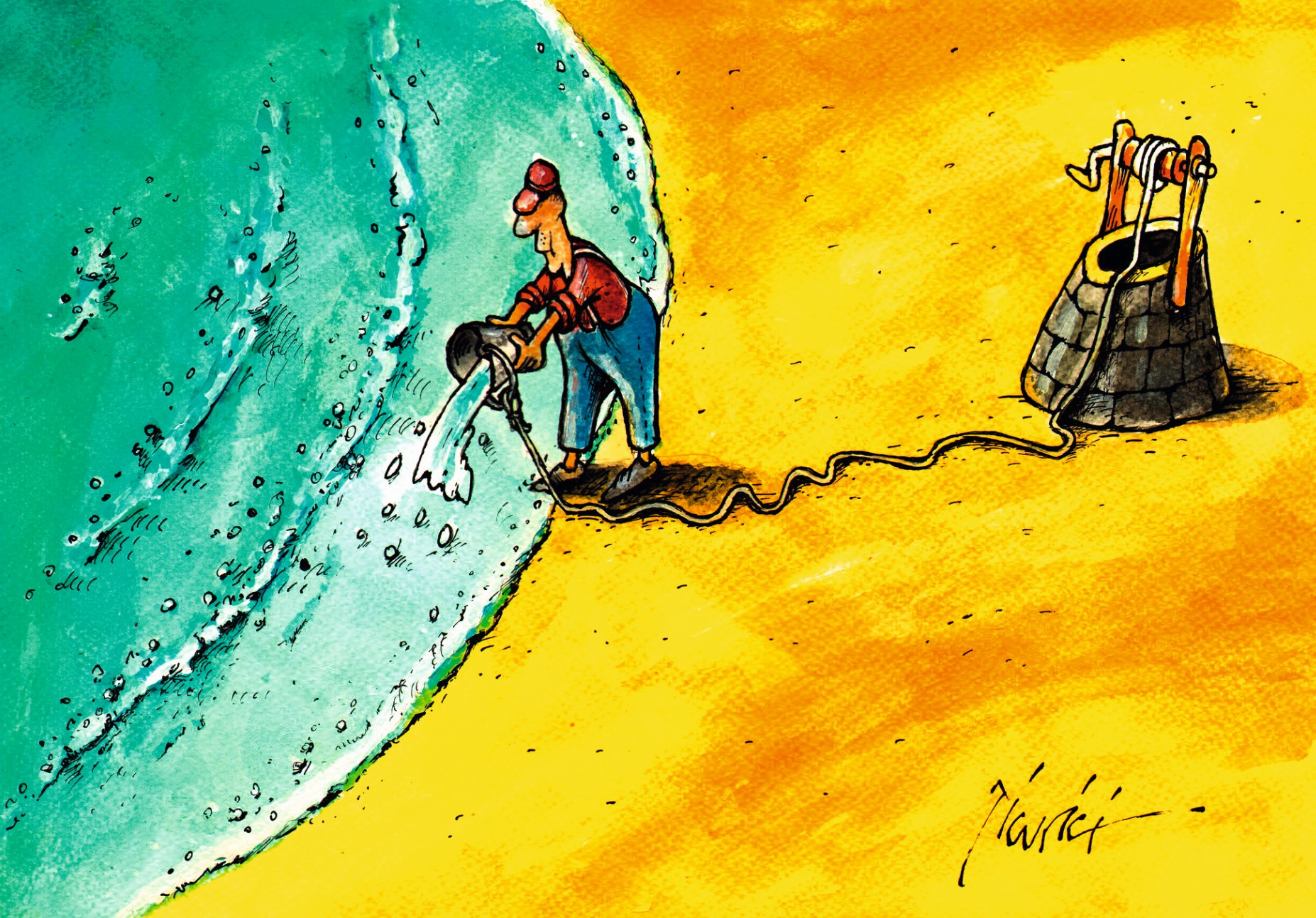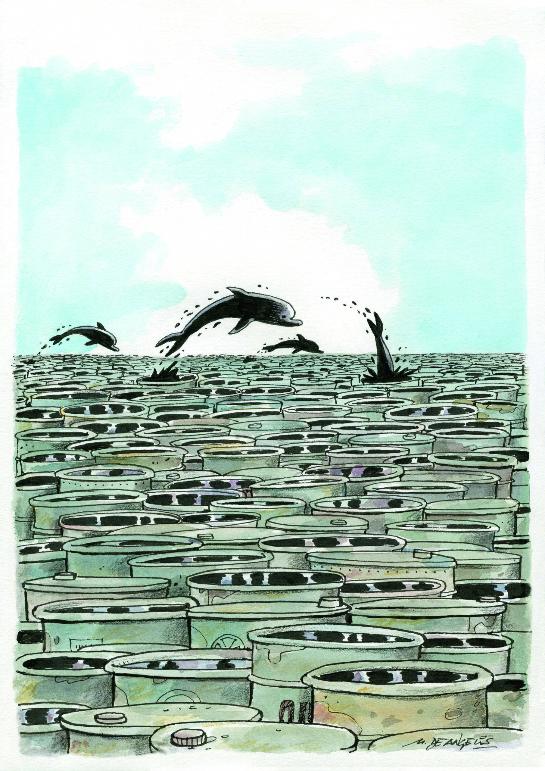 The 2014 edition of the Niels Bugge Cartoon Award integrates perfectly with the theme of WATER that runs throughout this issue of Revolve Magazine. The series of cartoon also coincides well with the UNFCCC negotiations at COP21 in Paris that culminated on December 12, 2015, with an historic and ambitious agreement amongst nearly 200 countries that binds them legally to address climate change with greater urgency. The ambitious and some would say rather unrealistic goal now is to limit global warming to an additional 1.5° Celsius. This would mean that “the fossil fuel era is coming to an end”, according to Samantha Smith, leader of WWF’s global climate and energy initiative. This may take longer than many would like but in the meantime, to accelerate the energy transition we must communicate more about the value of our oceans, and continue to raise awareness about what is at stake in a positive way and in the case of cartoons with a critical eye and a touch of humor.
