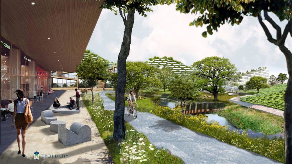 The Orchid City project was started with the mission of building new future-proof cities. In Orchid City, 25 organizations around the world work to learn from the past and craft a new framework for self-sustaining, resilient, and climate-adaptive urban places that are also affordable and realistic. It combines human-centered design, regenerative principles, and adaptive systems, and weaves new approaches to design with eco-engineering and real estate investment strategies. The project’s approach is founded on five elements: design which facilitates social connectivity, builds upon nature and ecosystem processes, adapts to changing circumstances, integrates living and working environments, and prioritizes inclusivity and diversity.