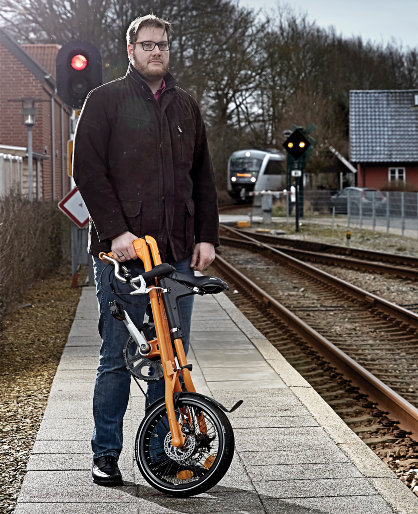 Thomas Klithav gets a cheaper ride by combining the train and a folding bike. Photo: City of Aarhus / Smart mobility