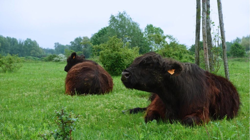 Galloways resting by the river. Photo: Belén Gutiérrez Carmona / REVOLVE.