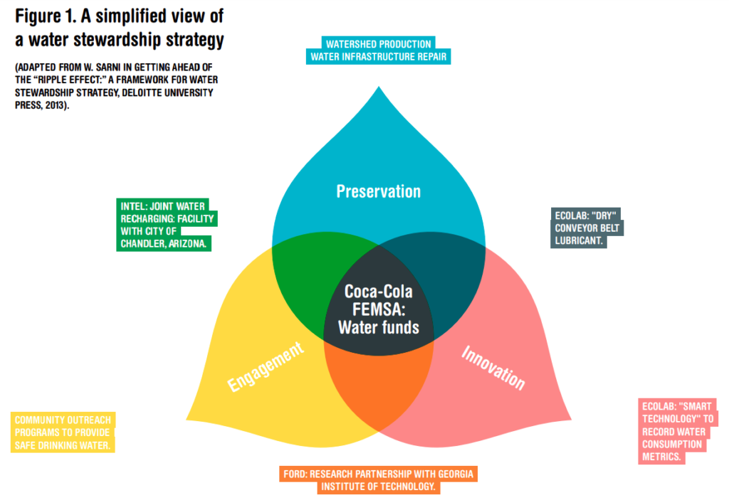 Another study of water stewardship, Water Management and Stewardship: Taking Stock Of Corporate Water Behavior (Newborne and Dalton, 2016) highlights the state of water risk and mitigation strategies. According to Newborne and Dalton: multinationals are better at understanding the “water-related contexts in which they operate” and a “few leaders” are beginning take actions as to how they manage water, but they are “mostly investing in water infrastructure within their own plants/premises.” Newbourne and Dalton go further and state that “companies need to be aware of, and adaptable to, water issues beyond the fenceline. The examples of the greater level of engagement in collective action are, currently, exceptions to the general rule.