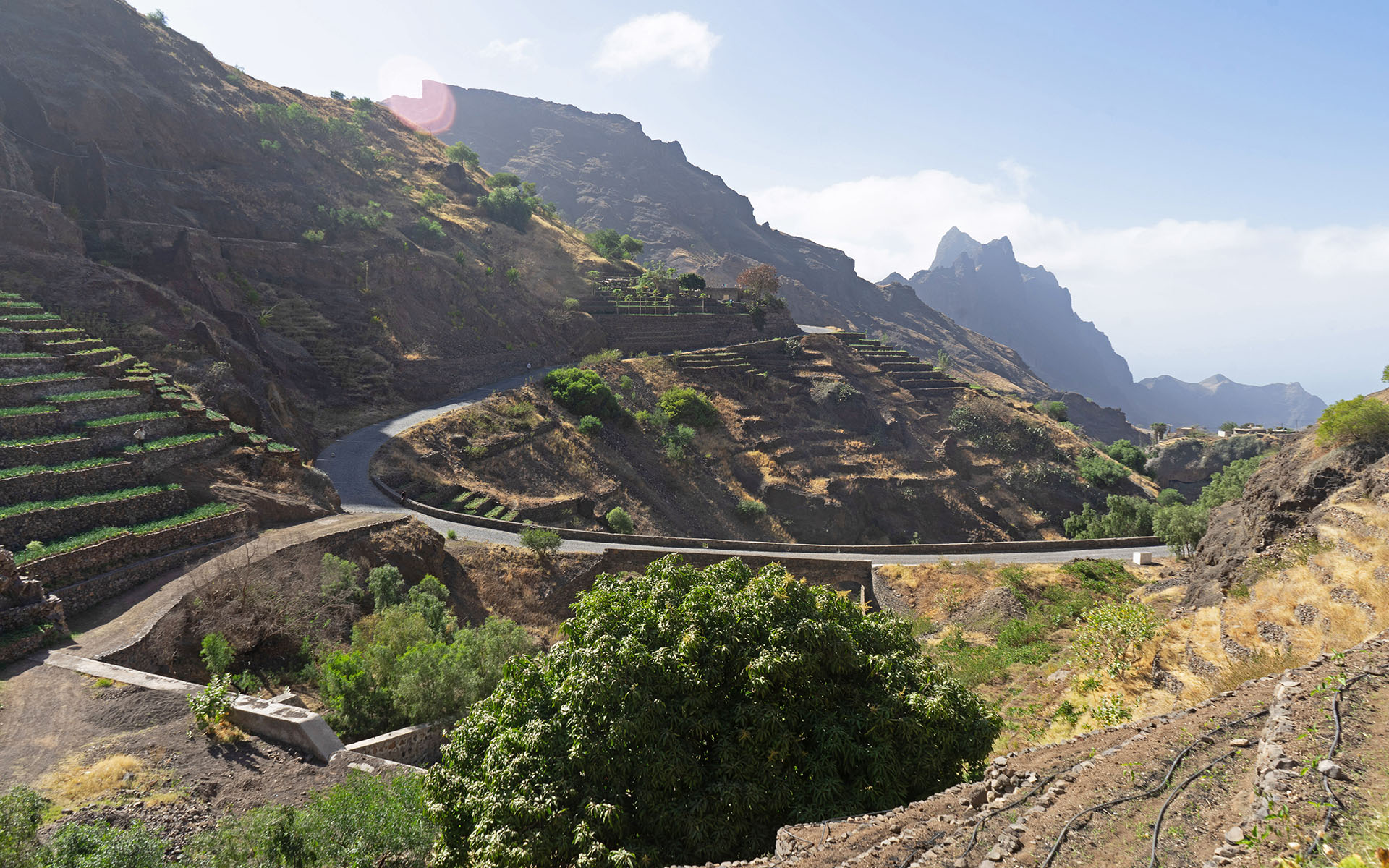 Santo Antão is known in Cape Verde as the island of the mountains. It is the second largest island in the archipelago in surface area and the third in population. It is also the northernmost and westernmost island, and is therefore the westernmost point of the African continent. From the desert climate in Porto Novo, the island’s largest city, to the humid terraces on the slopes of its steep Tope de Coroa, the country’s tallest mountain (1,979m), and the stunning Ribeiras, or river valleys, Santo Antão is a territory full of contrasts where the common ground is a lack of water.
