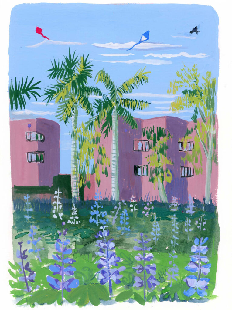 Designed by Le Corbusier, visit the northern Indian city of Chandigarh via the colorful paintings of Samia Singh.