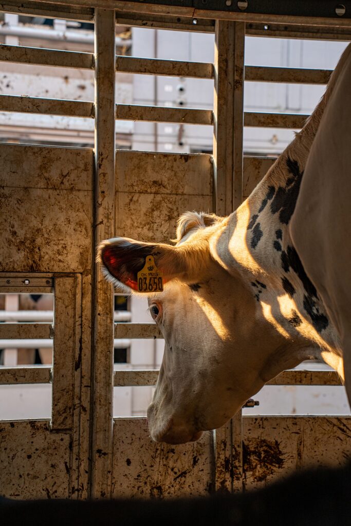 Featured image above: The interior of the transport truck is reflected in this cow’s eye. Canada, 2018. Photo: Louise Jorgensen / HIDDEN / We Animals