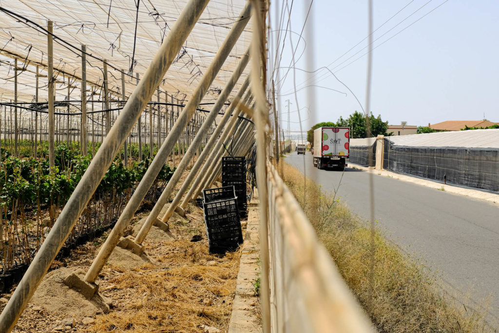It’s mid-July 2023, when REVOLVE visits, and many of the greenhouses are empty, lying in wait for the next planting season the following month. There is little action, although occasionally the languid heat is interrupted by a passing worker on an electric scooter, or a truck emblazoned with images of vegetables.