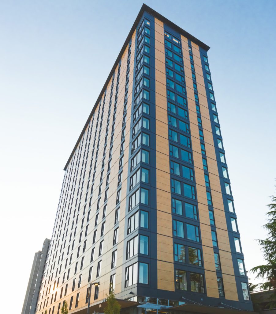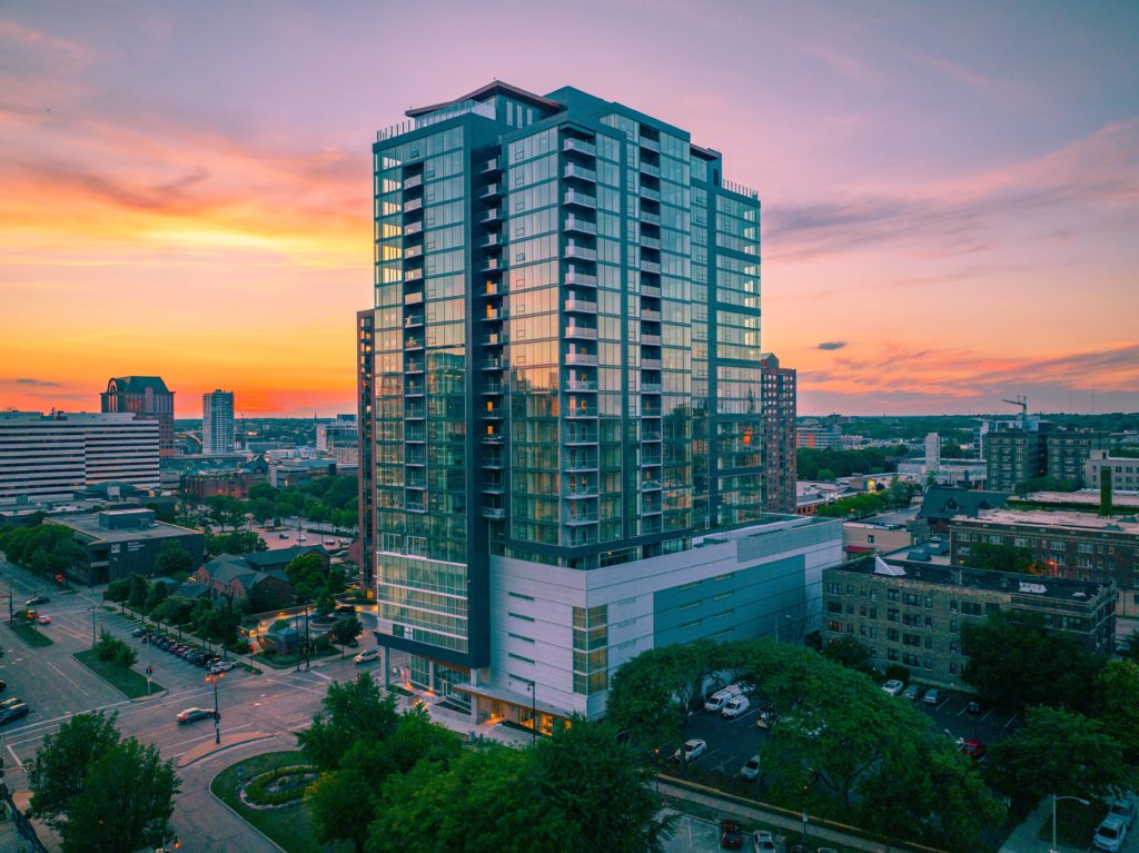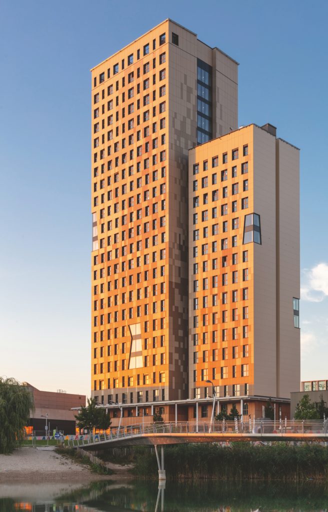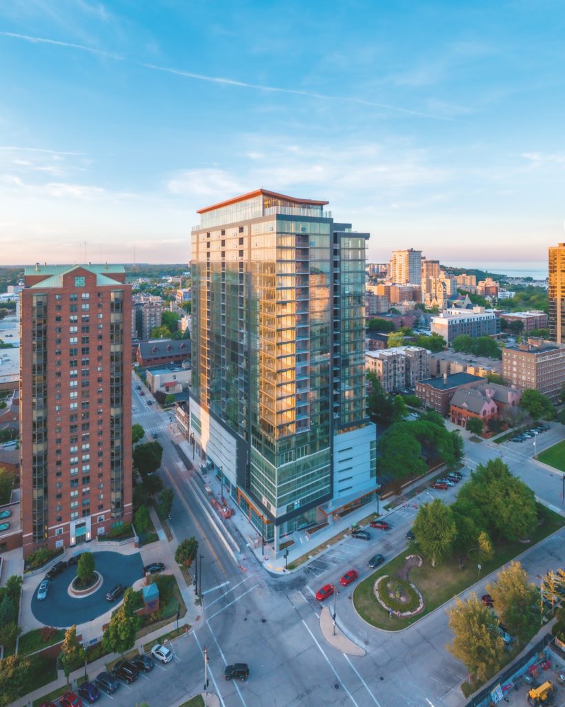 Europe has the most high-rise timber buildings making up around 71% of the total, followed by North America at 18%. As of February 2023, the tallest concrete-timber hybrid is Ascent MKE in Milwaukee, USA – a 25-story (86.6-meter) luxury apartment high-rise, while the 18-story mixed-use building Mjøstårnet in Norway is the tallest all-timber building to date at 85.4 meters.